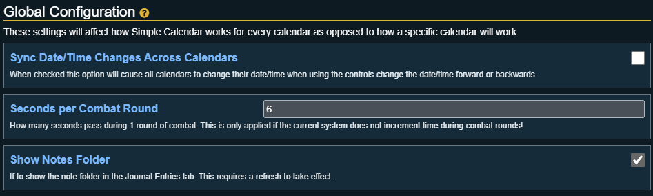 These settings will affect how Simple Calendar works for every calendar as opposed to how a specific calendar will work.