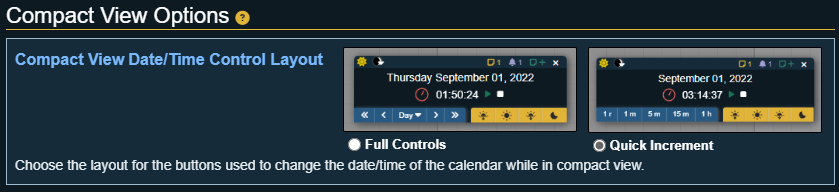 Choose the layout for the buttons used to change the date/time of the calendar while in compact view.