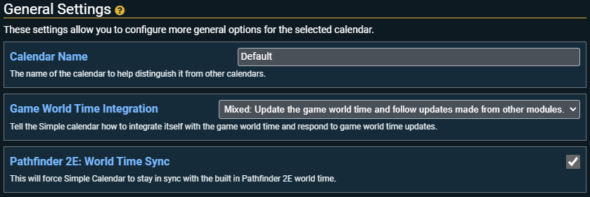 This setting will attempt to keep Simple Calendars date and time in sync with the Pathfinder 2E's World Clock.